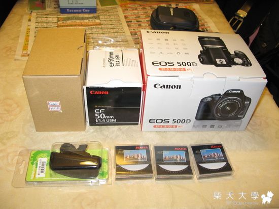 封印解除....陣容還挺龐大的...三顆鏡頭和500D相機