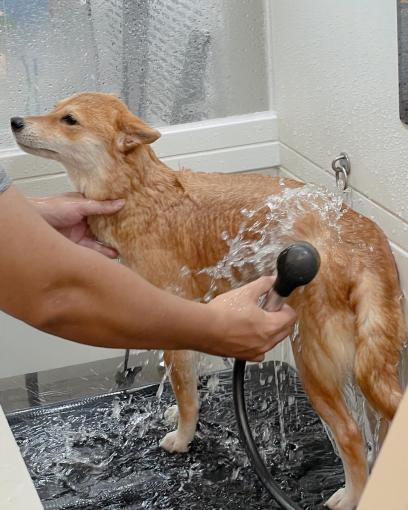 還有洗澡區只有一台,一次也只能洗一隻,多狗家庭要多帶人去幫忙會比較方便,一打二會很累(^_^)a