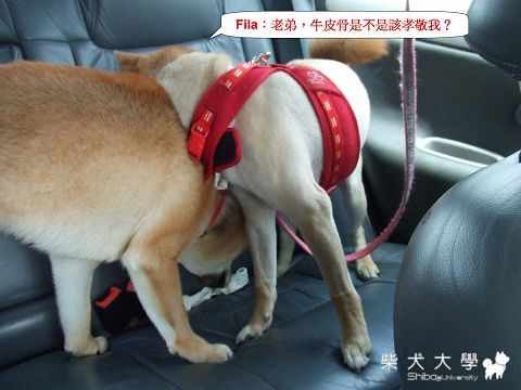 果然,兩隻年輕氣盛的公狗還是無法和平相處,還好我們家有另一個烘毛箱的籠子可以給Fila睡!