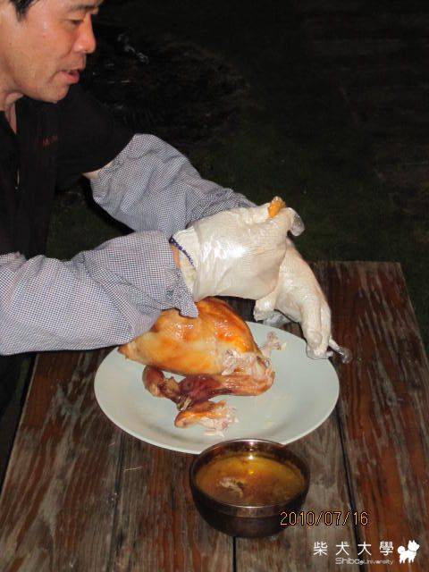 那邊最深刻的是晚上老闆在庭院中間主 "甕仔雞"