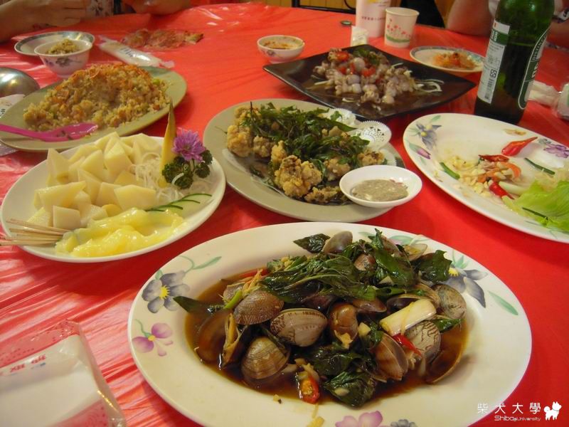 滿桌的海鮮..出門在外怎能輸給台南賤胚團..