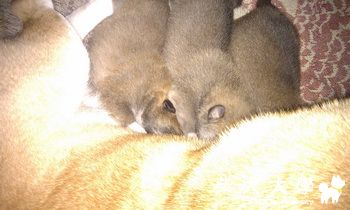 原發表者:旺旺&布丁麻 那是三寶 牠的姿式最多了... 一會搶吃奶 一會又壓在其他二隻上面 可能老么的比較霸道吧:157: