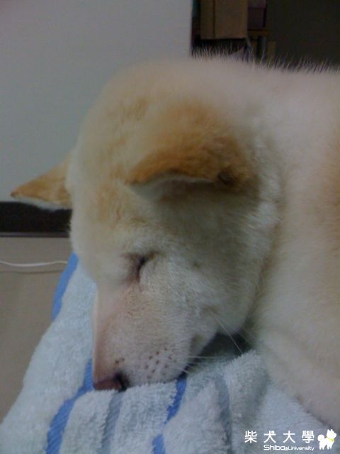 晚上回來洗完澡, 要用吹風機吹乾時, 牠累到趴下睡著了, 果然有累到。