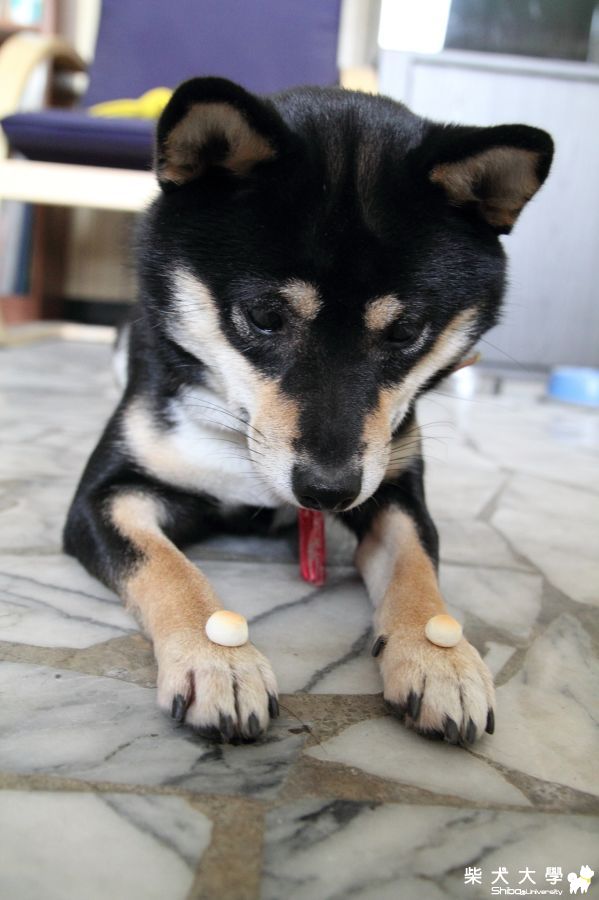 我家妞比較乖 把小饅頭放在鼻梁上 他絲毫不敢動~