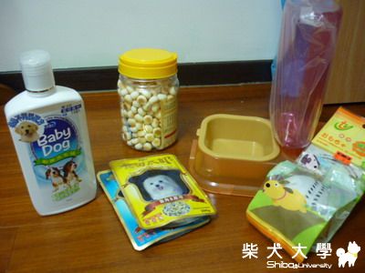 小饅頭 抗菌洗毛精 自動餵水氣 小球球 還有芽芽套在脖子上的蚤圈