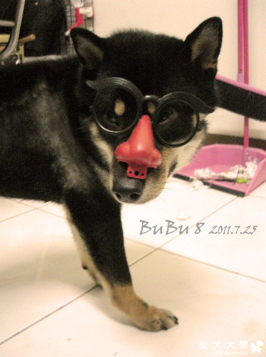 下班回家發現..... 朋友送的搞笑眼鏡被不卜咬爆了.... 一氣之下要他乖乖戴著! 不。許。動 !  不卜:糟糕搗蛋被抓包  後面是我咬壞的垃圾  不。許。動 !   有誰可以救我  裝可愛有用嗎?