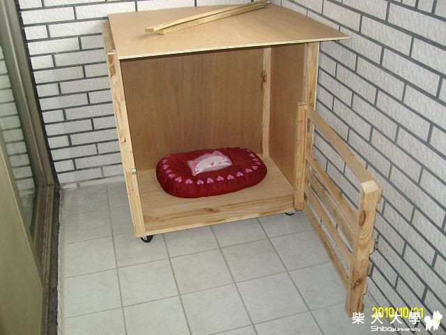 自製的狗屋真棒耶! 可樂真是好狗命呀!