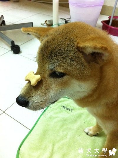 原發表者:Jinbabe看到你的照片~ 今天立刻衝去買狗餅乾要來敎她~ 但是我ㄧ拿著餅乾 牠會乖乖坐下 我慢慢靠近要放在她鼻上 她就一直後退 我ㄧ近 她就退, 不然就是一直看著餅乾 抬頭 一直抬 我要放上去 就跑給我追 是了好久喔 越坐越遠 牠快7個月 還可以訓練嗎?? 我好想學這招
