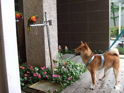 Fighter很好奇癡癡的看著鳥兒