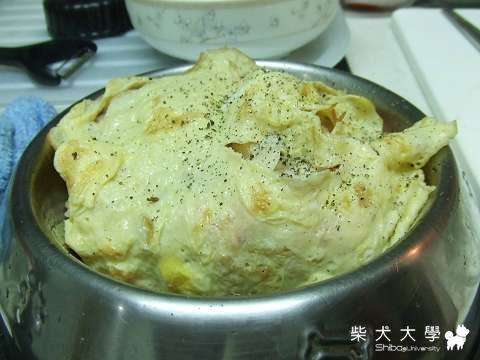別忘了讓狗狗吃之前先用刀子切一下蛋皮!