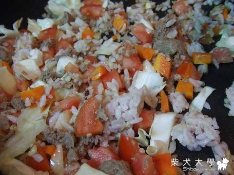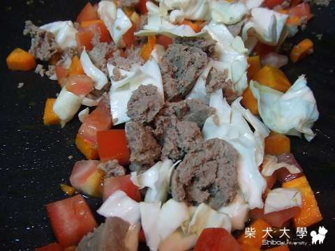 要切碎一點喔!畢竟狗狗們還是肉性動物,要切碎一點跟肉末混在一起才不會被挑出來!