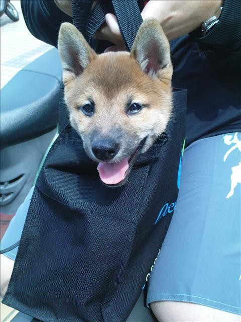 原發表者:將媽將將是還好,不會怕坐機車一開始我用籃子他都一直想爬出來所以就索性不用不過牽繩是一定要有喔長度要稍微調整一下不能放太長,不然還是有可以跳車的機會也不能綁太短,不然柴柴會勒到氣管加油唷~