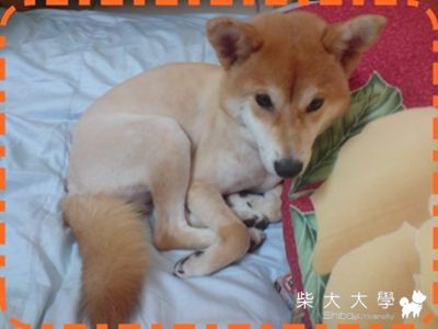 牠被剔毛..看起來好像有點悶悶不樂的樣子.....