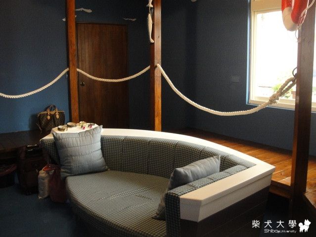 整個就是很船上的裝潢沙發跟床..