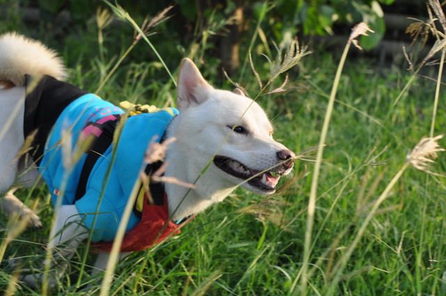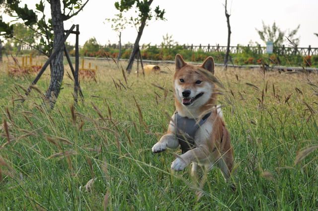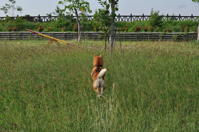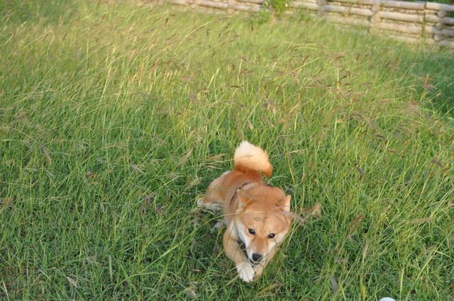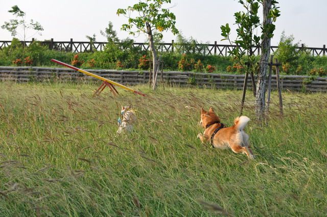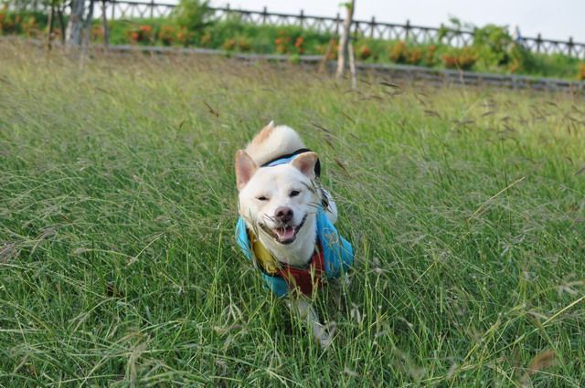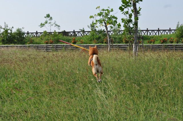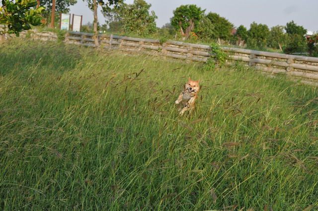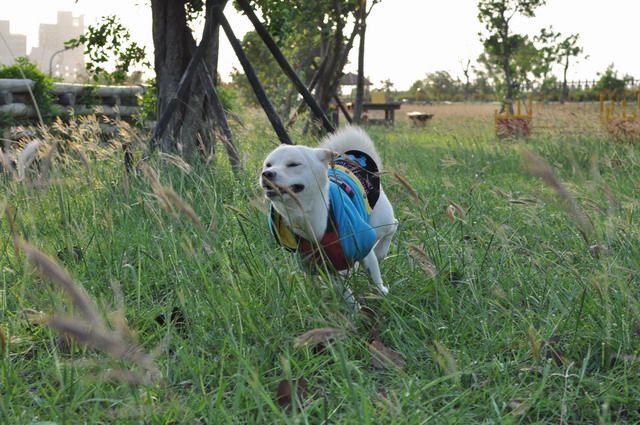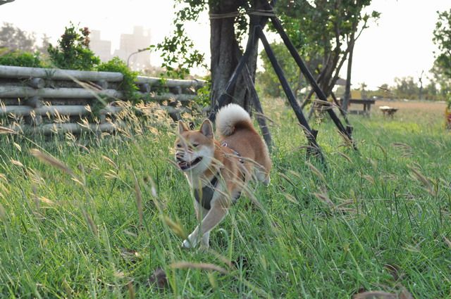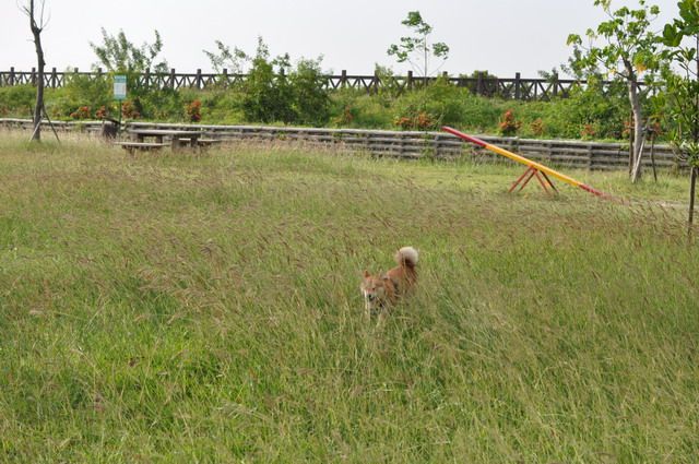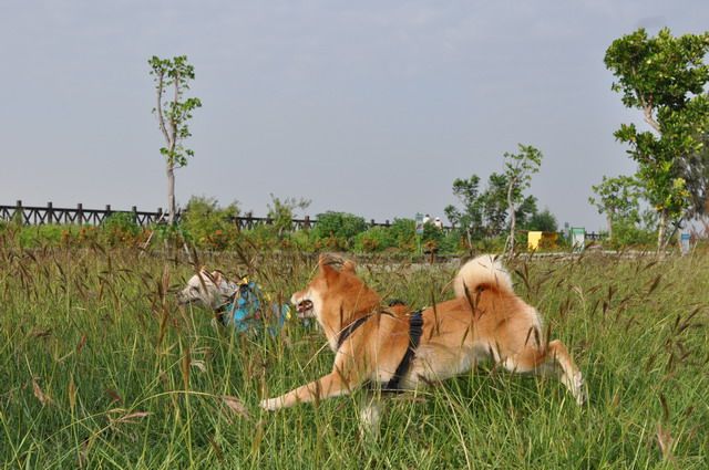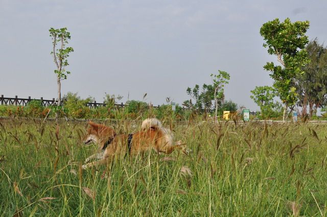 雖然草很長...但柴柴跑在其中 真有野外的FU