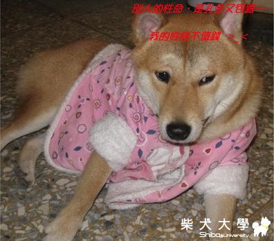 這幾天寒流來 拿起小朋友穿不下的舊衣服 給"旺旺"當棉被蓋 所幸就把她穿上了 好像還不錯 結果 就一動也不動的給我結屎面