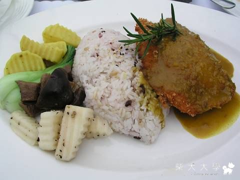 坐戶外,餐點冷的快,沒多久藍帶豬排的肉就硬的跟橡皮一樣了!