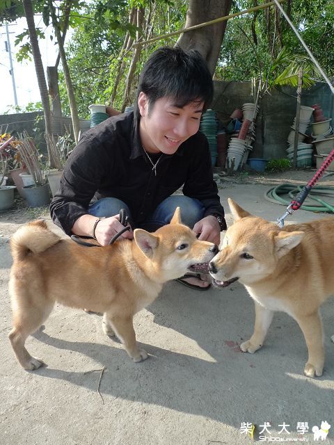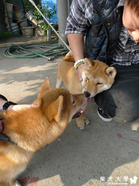 海匠回娘家囉~~期待已久,今日終於又帶著海匠回娘家,會長說:我們把海匠照顧的很漂亮,;P但不識相的海匠,會長要看牠的時候,他竟然不給碰:L....傻眼~這個不知好歹的小鬼,會長也順便檢查了海匠的蛋蛋是否已經掉下來,果然~經會長一摸~~~ 2顆 (終於放心):lol,會長說:在他那出來的狗,還沒發生有單顆的~以下是海匠回娘家的照片分享~也有柴大的朋友喔:victory: 海匠與VAKA初見面就用臉磨蹭打招呼.... 六筒豋場~ 海匠的親友~  海匠很星奮~~~ vaka~~   米娜豋場~~海匠的同父異母姐姐 海匠還是磨蹭打招呼~~(老招);P 小恩豋場~~:victory:   不愧是姐弟長的還真像,我都快認不出誰是誰:lol 牠們一直在玩追趕跑跳 蹭...玩不膩   也要蹭一下六筒打招呼~ 孫六龍勢老大豋場~  會長在示範交學~       學生~~小恩  小恩真是一個很漂亮的柴犬~ :sam05這台訓練站台可是全台第一台,由會長發明的..厲害八   小恩逐漸適應站台~              三個玩在一起不會吵架耶~  好厲害的MOMO,傳說中的狗公腰~   海匠在專心聽長老孫六老大講解如何成為一之優秀的冠軍犬~ 真的很認真在聽唷~;P  跟YULI玩~~被騎了!    以上為海匠回娘家精彩片段~感謝看棺收看:victory: