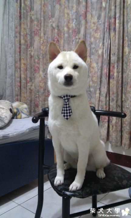 原發表者:摳媽 還好啦!我們也是出門才會幫牠繫領帶,回家就拿下來了°
