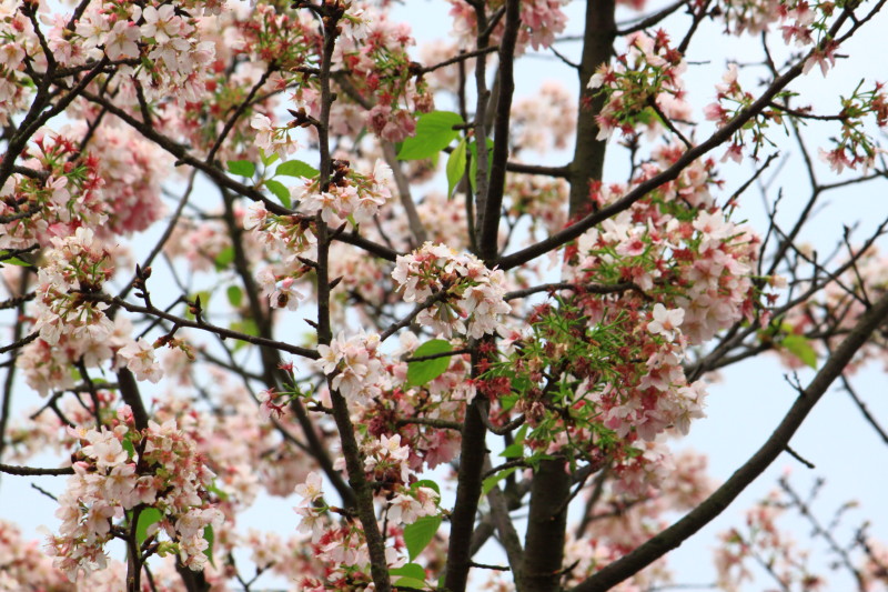 在淡水北新路上,不過有葉子冒出了,我想花期也快結束了