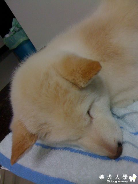 晚上回來洗完澡, 要用吹風機吹乾時, 牠累到趴下睡著了, 果然有累到。