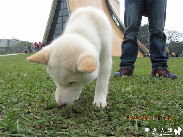 今日饅頭在東海大學教堂前草坪廣場玩耍, 吸晴度一流,