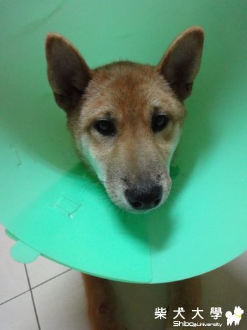 我家yummy當初結紮回來也是帶著頭套很憂鬱.動也不敢動.只敢原地坐下:124:本來還想說以後可以用這招處罰他.結果隔天適應之後就無所謂了.走路還橫衝直撞.3不5時還會被他撞到:123: