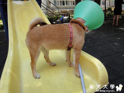 :P哈哈綠色大聲公配黃色溜滑梯畫面真好看ㄟ,她真有溜嗎?反正都很高興:loveliness: