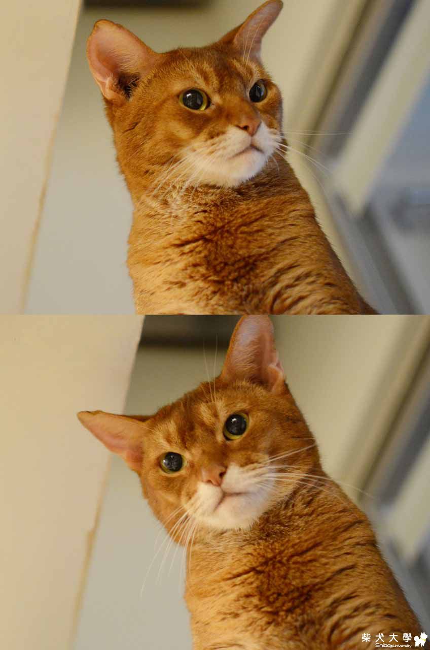 我們百思不得其解,只猜說,也許小善存在沙發上跳躍的動作,對阿仔來說,像是變大了,要從上面跳進柵欄內....