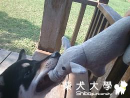 這隻是掉在地上的小豬布偶 不知道是誰遺落的 但是球球看到時 眼睛馬上亮了