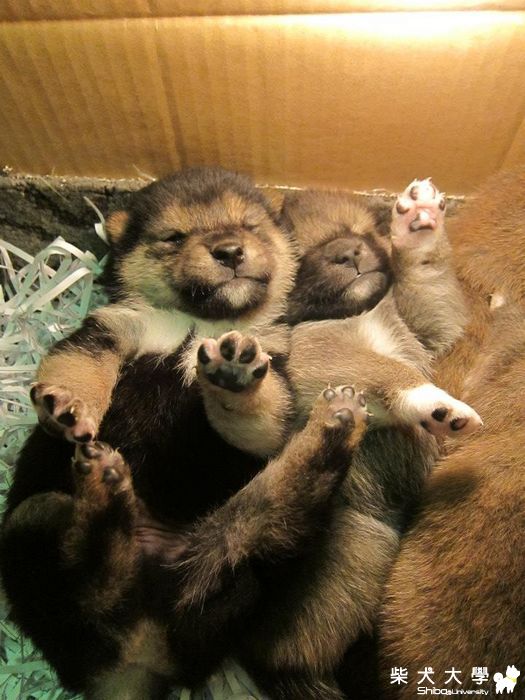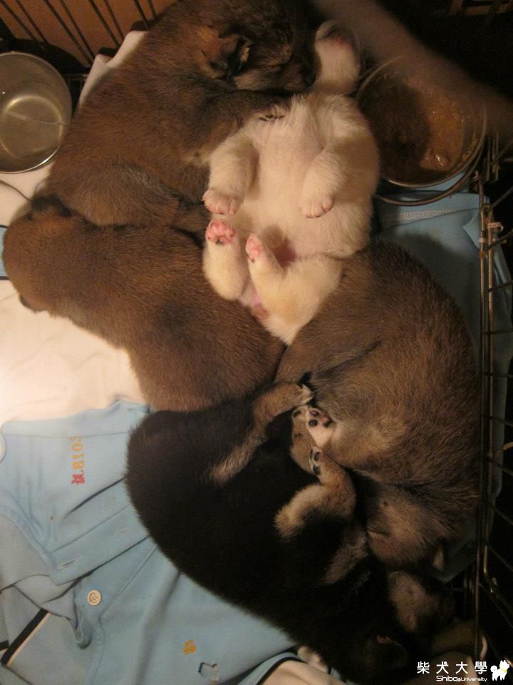 5隻全擠在一起睡,尤其那張睡覺腳還擺POSE的那兩隻超可愛的!
