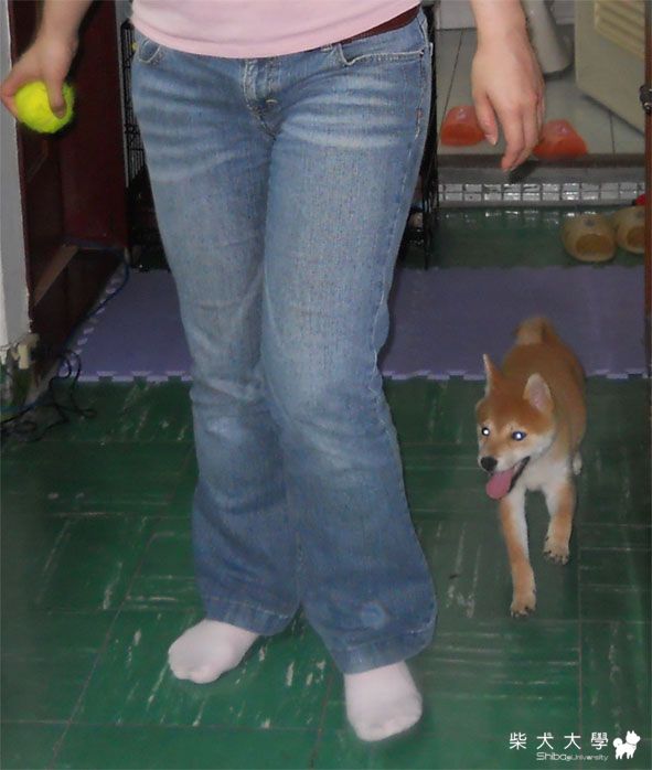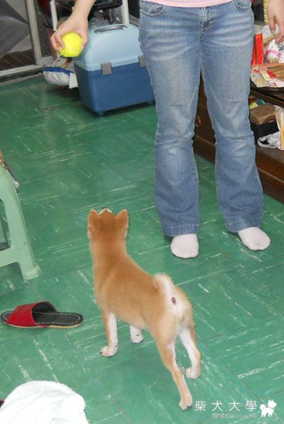 我家的Yoco只要有他的最愛........網球 他就會跟著到處跑  會先專心的看著網球  就跟著跑了  用這招騙她進籠子也很方便