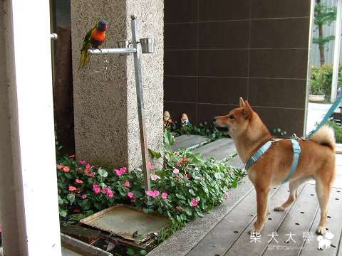 Fighter很好奇癡癡的看著鳥兒