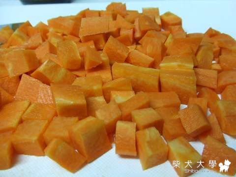 記得,要切小塊一點!讓狗狗比較好消化!