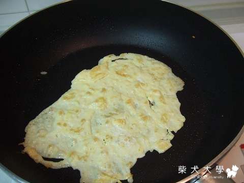 煎久一點,讓蛋皮煎焦一點,會有濃濃的蛋香喔!狗狗會超愛~