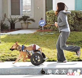 ★背景:2008年1月在台灣因車禍導致半身癱瘓,同年7月由美國人Judy認養,美方動保協會協助訂製輪椅。為免殘廢後腿在地面拖行受傷,進而截肢