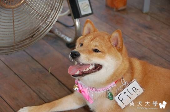 超可愛的Fila,跑一跑熱了就坐在電風扇前吹風