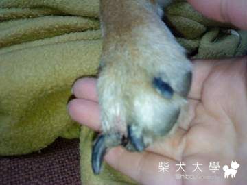 牠一直發出哭的聲音,然後一直想進去家裡..我讓牠進屋後,把柴哥臭屁放出來,讓牠們相聚..沒多久臭屁拔也回到家.便趕快看牠有沒有受傷!外觀來看,牠的腳指甲外翻,身體挫傷..走路一跛一跛的..其它部位還好..但我們怕會有內傷,所以今天我們會先打電話給我們獸醫,看能不能幫我們檢查ㄇㄟㄇㄟ...
