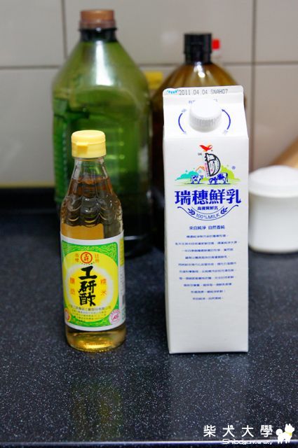 自製無鹽起司, 材料很簡單:全脂牛奶、工研酢。